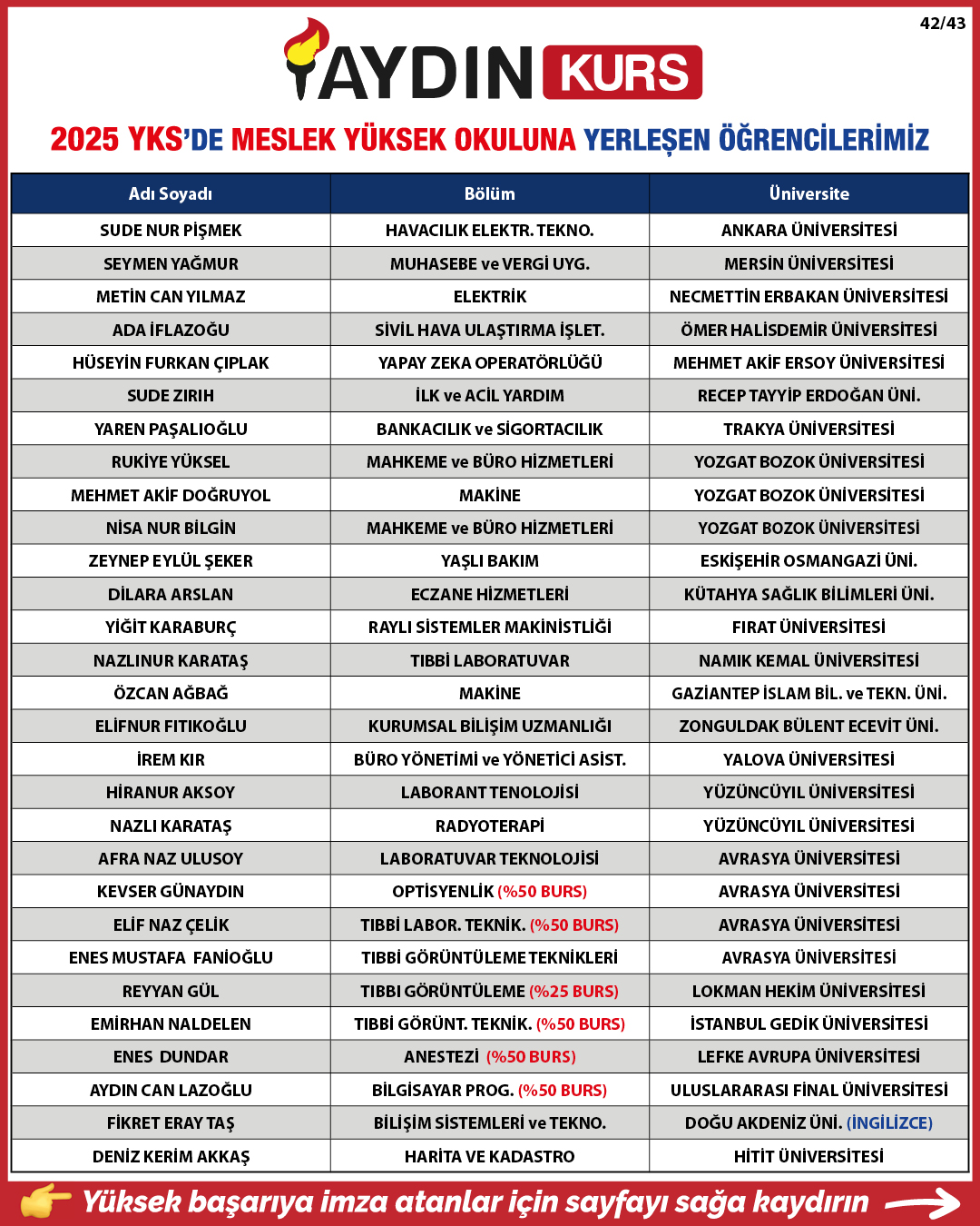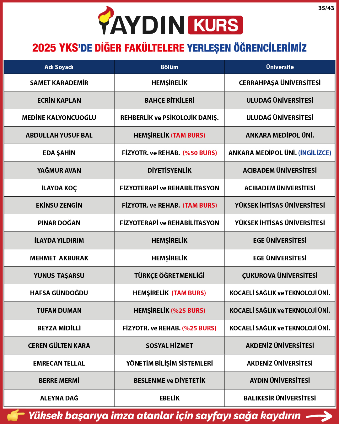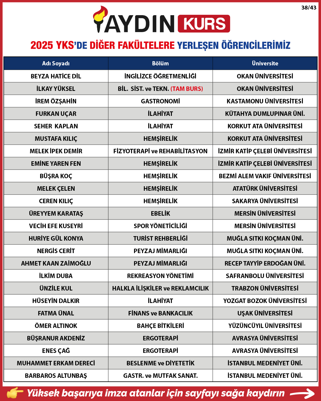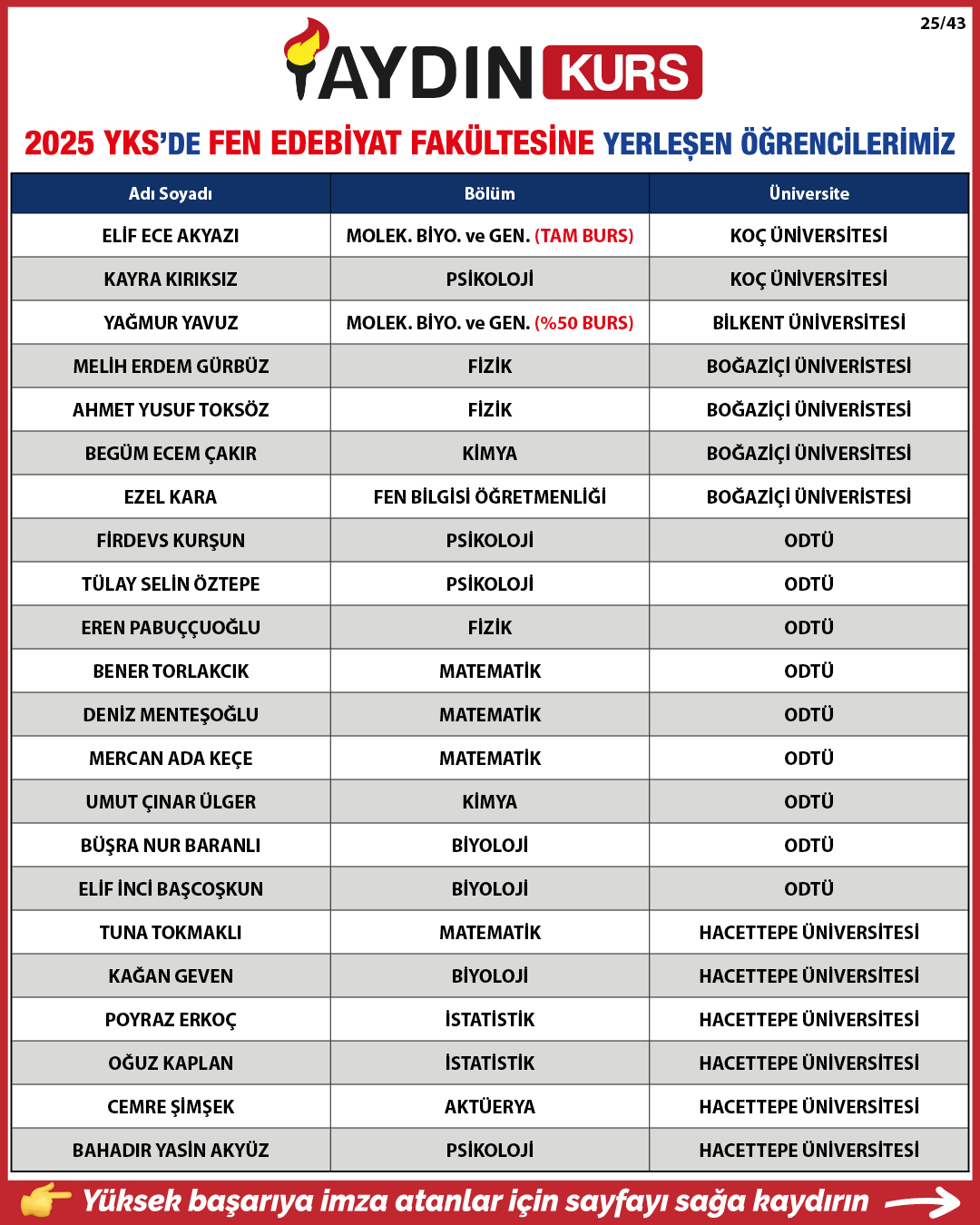 2025 YKS YERLEŞTİRME SONUÇLARIMIZ