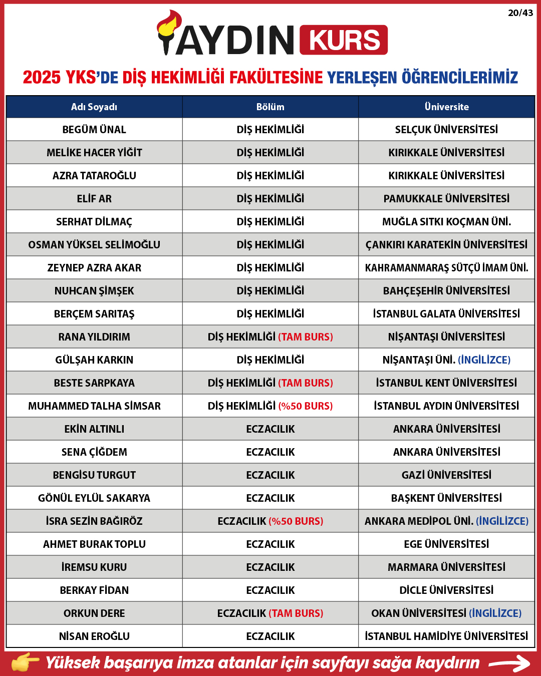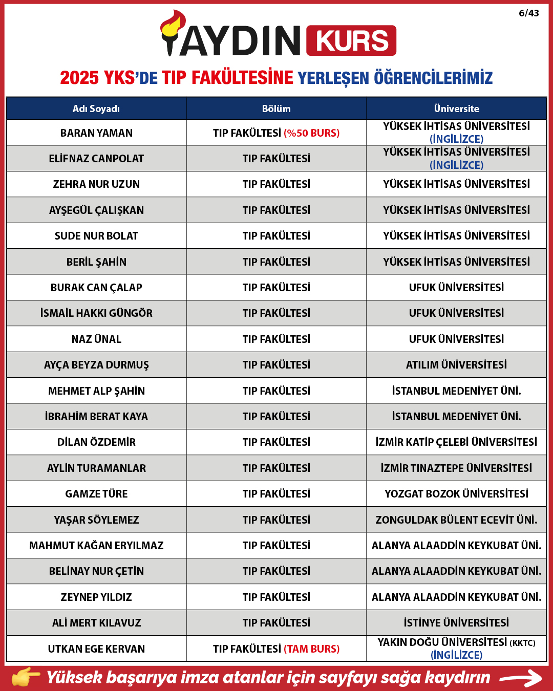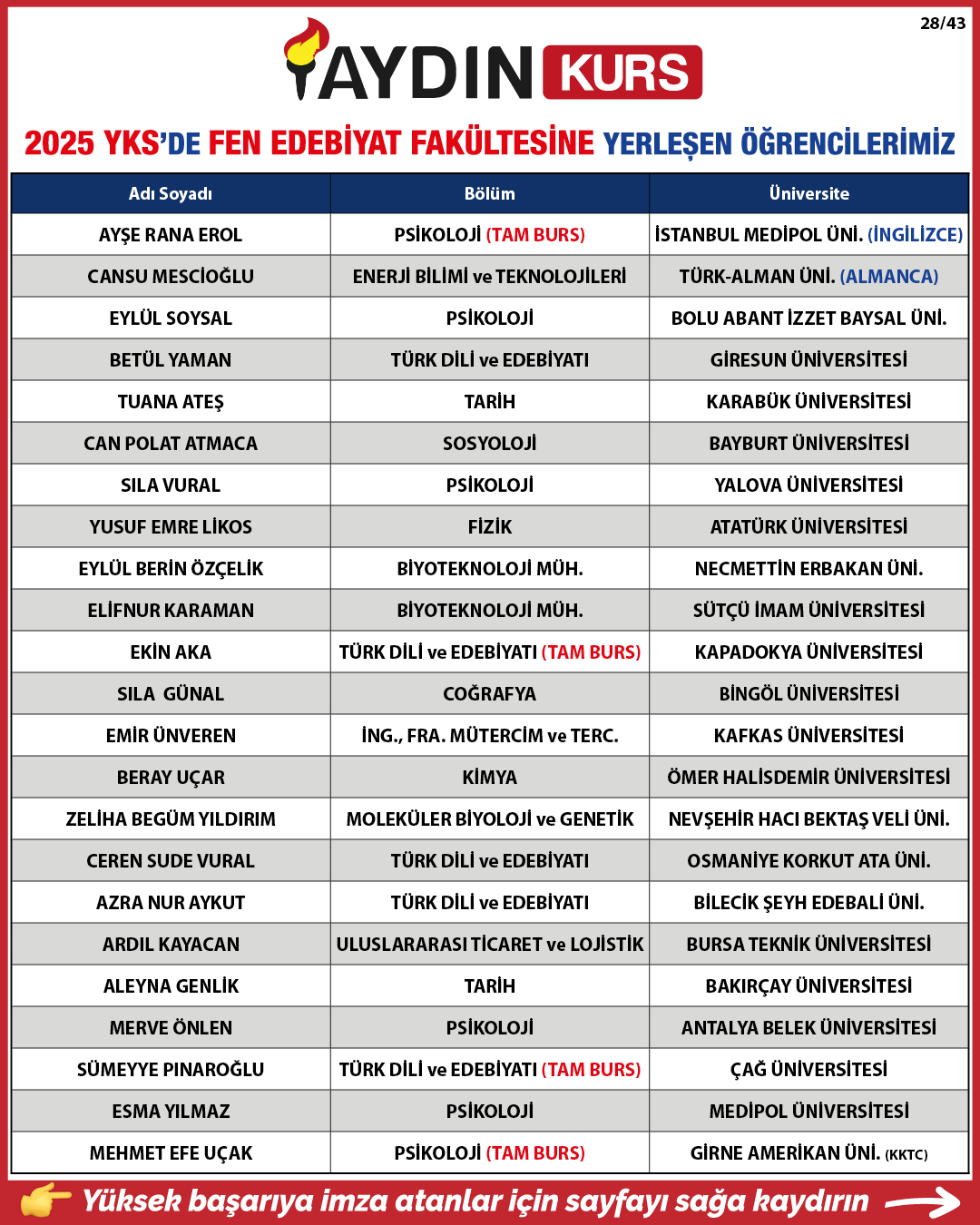 2025 YKS YERLEŞTİRME SONUÇLARIMIZ