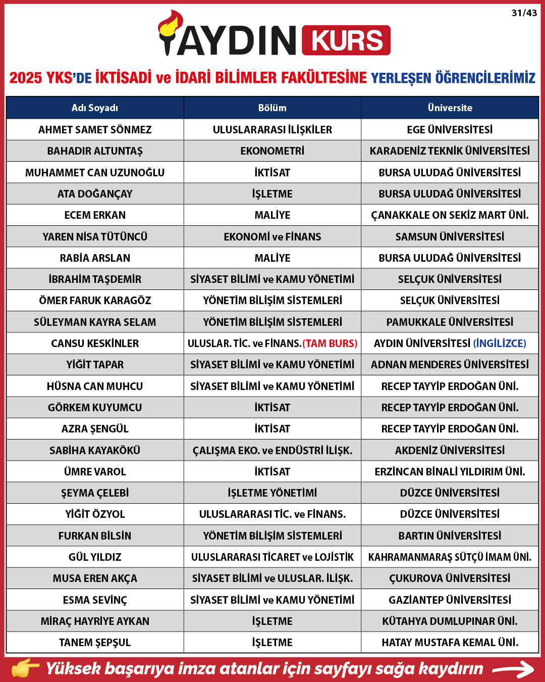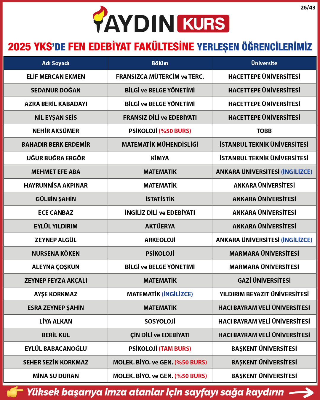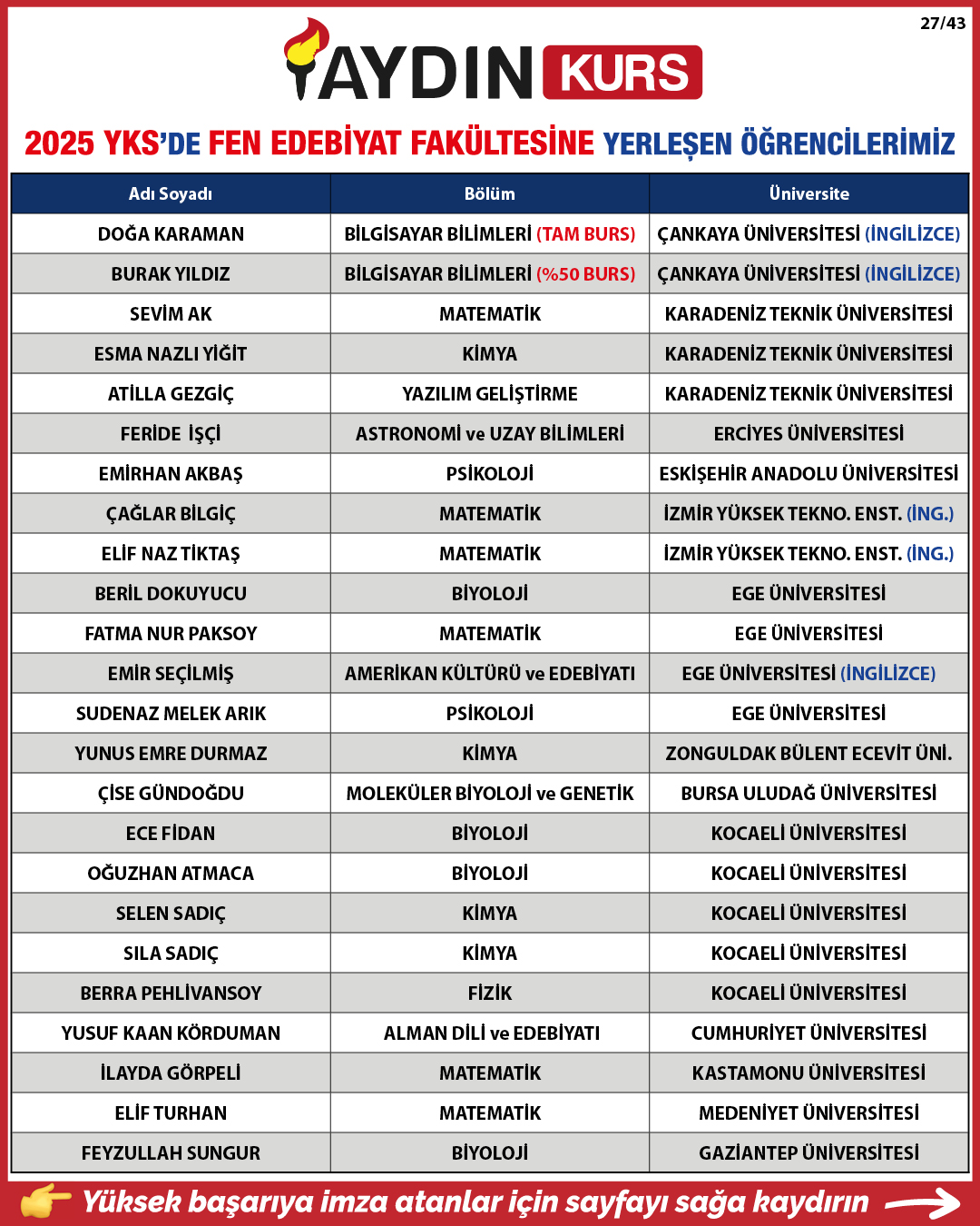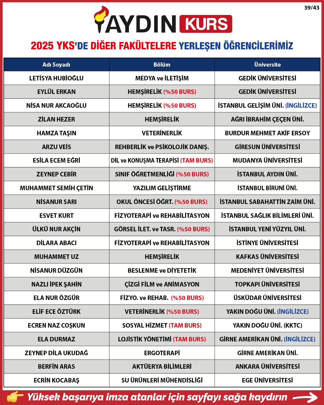 2025 YKS YERLEŞTİRME SONUÇLARIMIZ