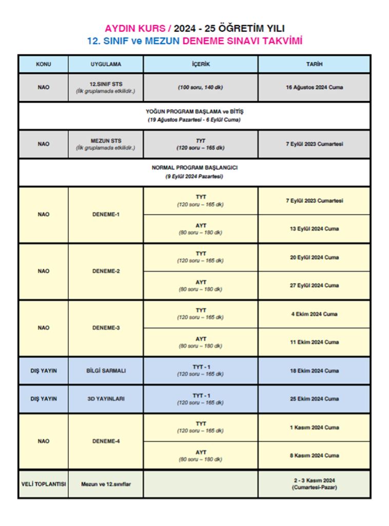 Aydın Kurs’ta eğitim süreci, öğrencinin akademik başarısını maksimize edecek şekilde yapılandırılmıştır. Ders programlarımız: